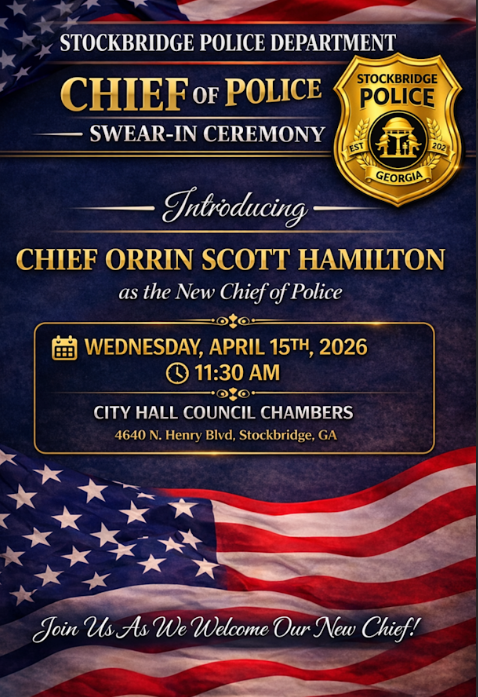 Stockbridge, GA – The City of Stockbridge has appointed Orrin Scott Hamilton as its new police chief, marking a historic milestone as he becomes the first African-American to hold the position in the city’s history. Hamilton was officially sworn in on April 15, 2026, at City Hall Council Chambers.